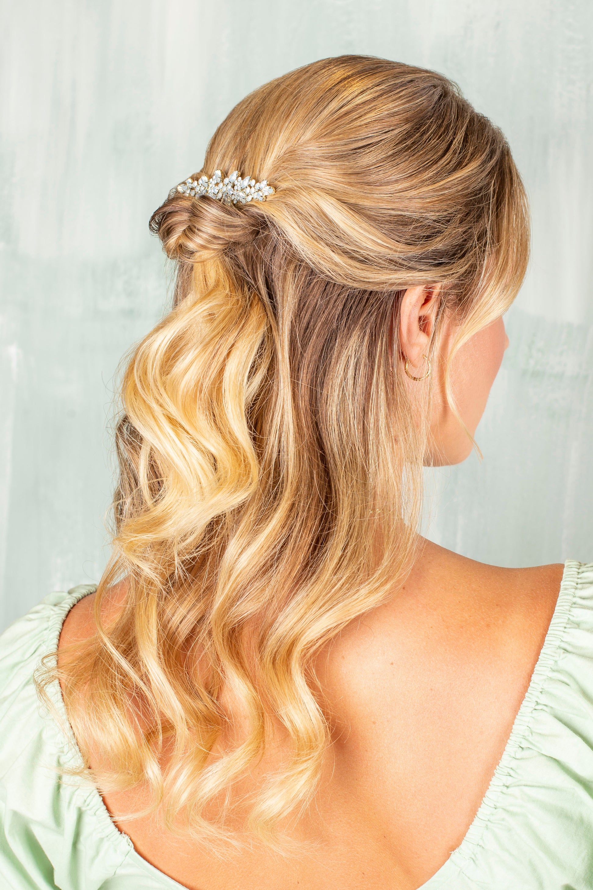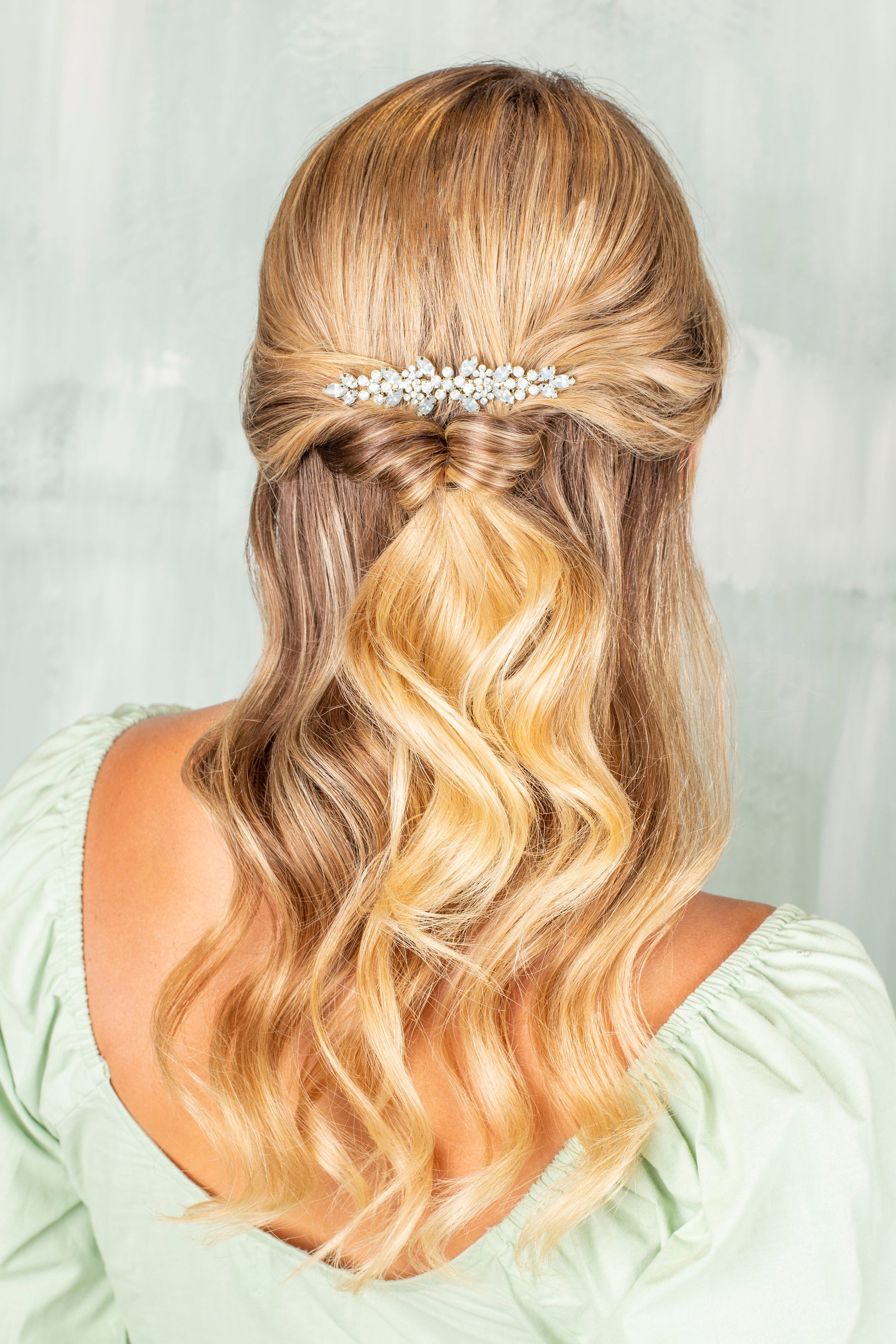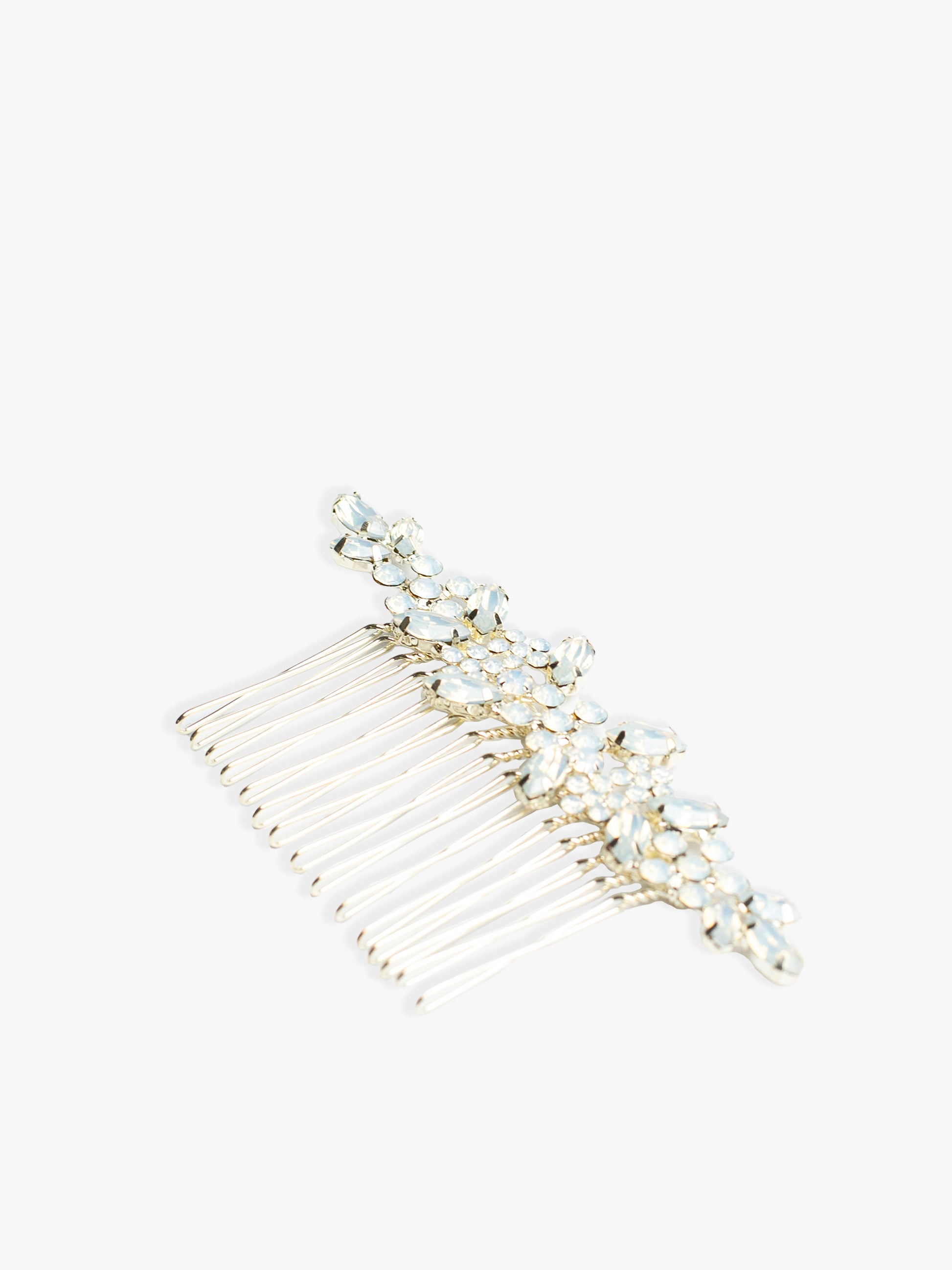 A set stone comb featuring a delightful blend of frosted shapes, elegantly finished in a pale gold finish.